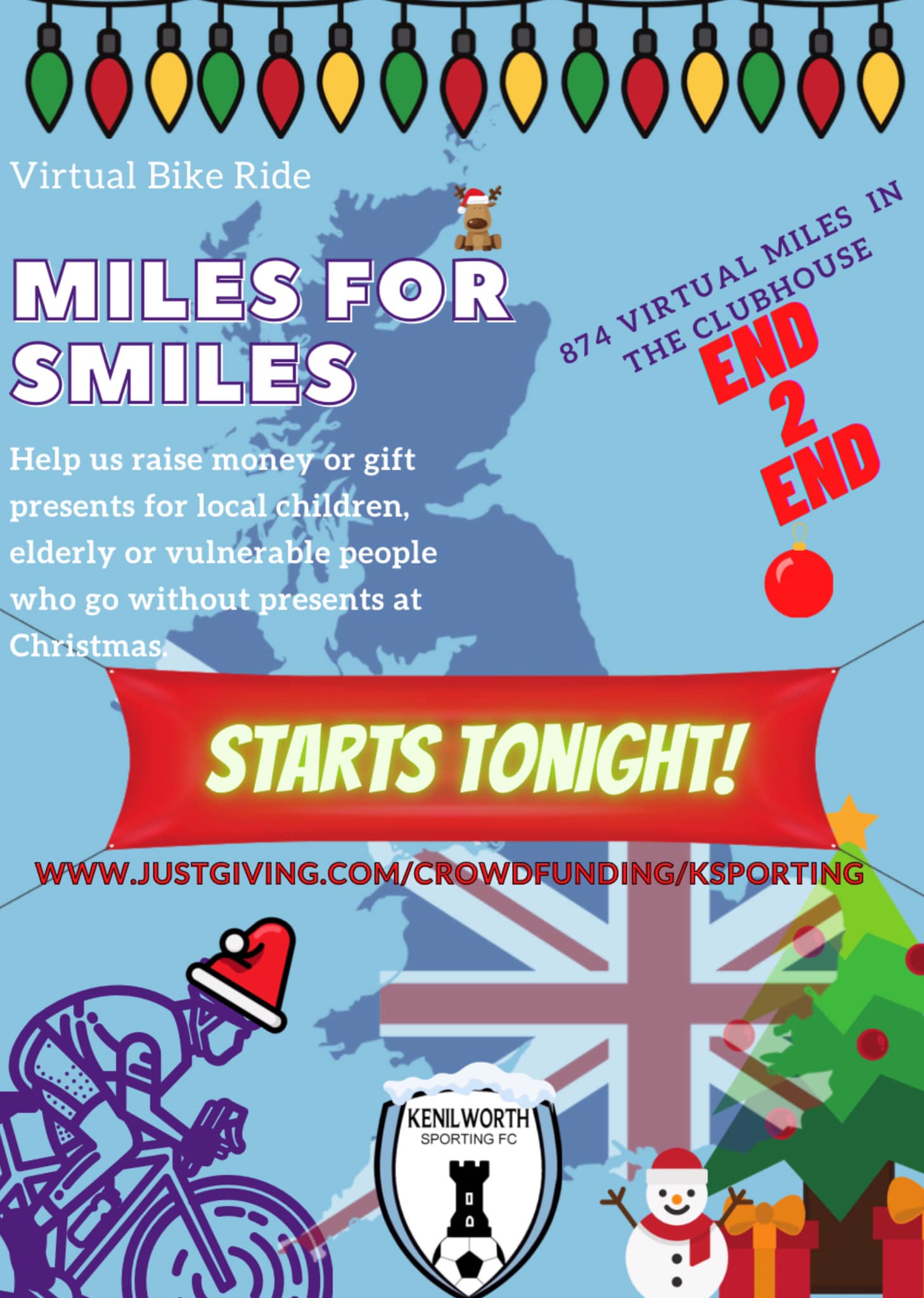 We are doing the virtual bike ride and all money raised will go to the local community. We are looking for families or elderly people who need that extra gift or support at Christmas - if you wish to nominate someone who fit’s the criteria please email us at info@kenilworthsporting.co.uk. The aim is to raise as much as possible and to be able to create hampers or gifts. The more we raise the more we can help. You can drop gifts to the club in Gypsy Lane as we still have people on site doing take away food or donate on https://www.justgiving.com/crowdfunding/ksporting